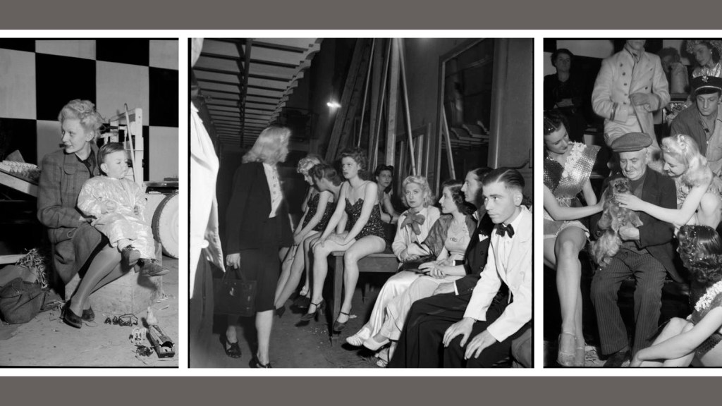 Extras waiting for acting on the shooting of Croisières sidérales directed by André Zwobada (Francoeur studios, December 1941 – photos by Roger Parry).