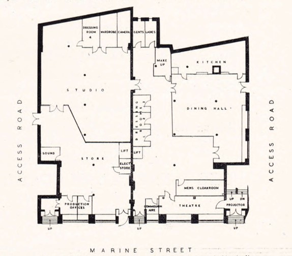 Layout of Ealing’s temporary studio in Bermondsey, used in filming Pool of London.